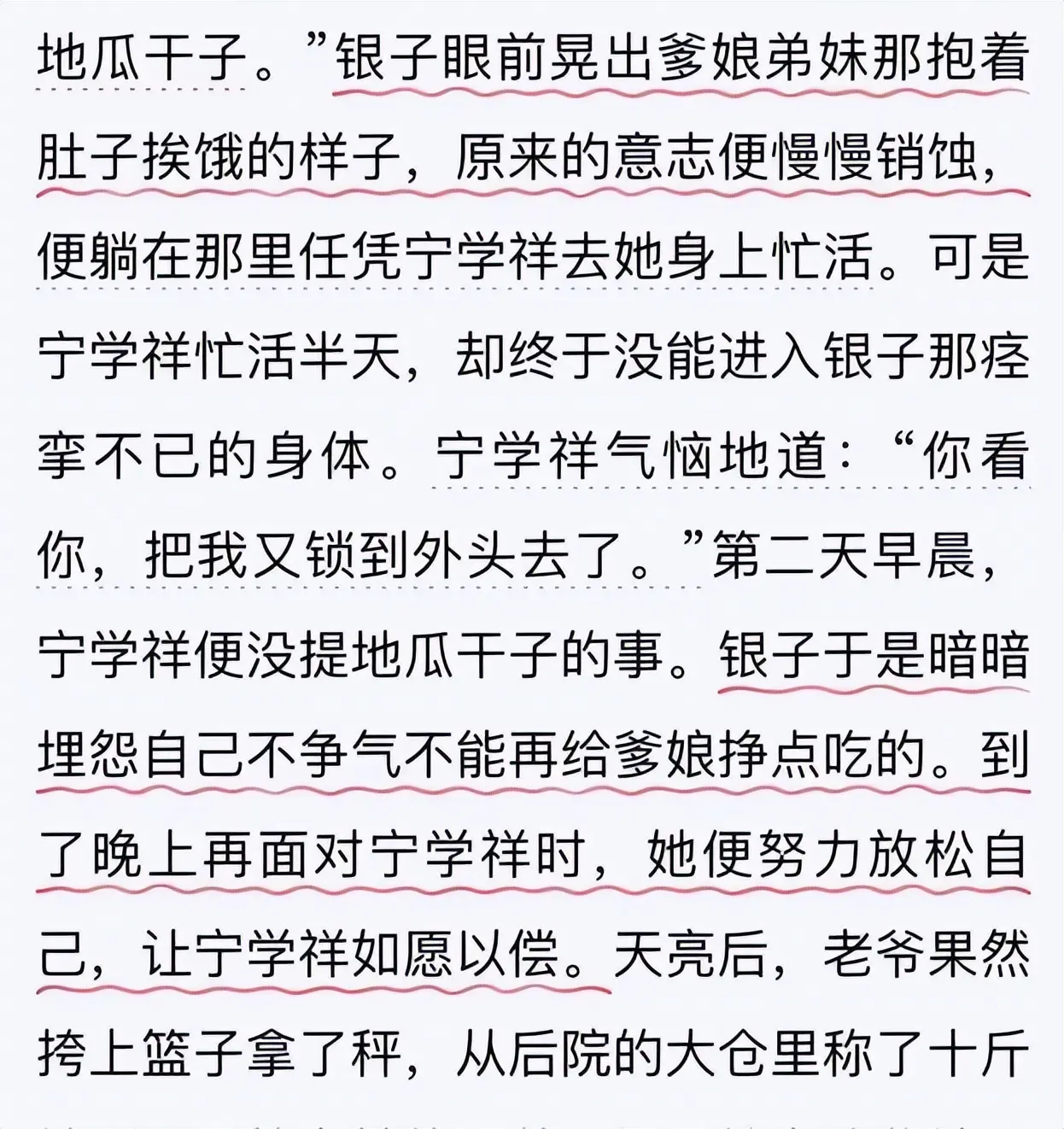 同样是为了换粮嫁人,书里的银子一直被宁学祥压着,连怀孕都不能自己做主。